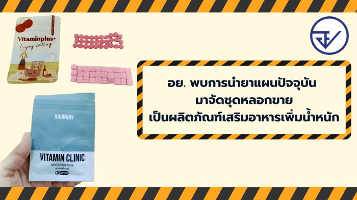 สำนักงานคณะกรรมการอาหารและยา (อย.) และสำนักงานสาธารณสุขจังหวัดมหาสารคาม ได้รับแจ้งเบาะแสการจำหน่ายผลิตภัณฑ์ “Vitaminplus+” และ “VITAMIN CLINIC” ฉลากผลิตภัณฑ์ไม่มีการแสดงเลขสารบบอาหารหรือเลขการอนุญาตผลิตภัณฑ์ และไม่ระบุผู้ผลิต ผ่านแพลตฟอร์ม TikTok โดยมีการโฆษณาอวดอ้างเป็นผลิตภัณฑ์เสริมอาหารเพิ่มน้ำหนัก จากการตรวจวิเคราะห์ผลิตภัณฑ์ ณ ศูนย์วิทยาศาสตร์การแพทย์ที่ 7 ขอนแก่น พบว่า ผลิตภัณฑ์ “Vitaminplus+” ตรวจพบเดกซาเมธาโซน (Dexamethasone) เป็นยาในกลุ่มคอร์ติโคสเตียรอยด์ (corticosteroid) จัดเป็นยาควบคุมพิเศษ ตามประกาศกระทรวงสาธารณสุข เรื่อง ยาควบคุมพิเศษ และตรวจพบไซโปรเฮปทาดีน (Cyproheptadine) ซึ่งเป็นยาจำพวกแอนติฮิสตามีน (Antihistamine) จัดเป็นยาแผนปัจจุบัน ประเภทยาอันตราย ตามประกาศกระทรวงสาธารณสุข เรื่อง ยาอันตราย ส่วนผลิตภัณฑ์ “VITAMIN CLINIC” สูตรวิตามินบำรุงร่างกายเพิ่มน้ำหนัก ที่ฉลากระบุเลขทะเบียนยา 1A2476/29 จัดจำหน่ายโดย KHUNNAY ตรวจพบไซโปรเฮปทาดีนเช่นกัน