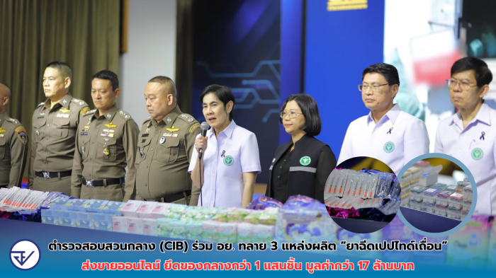 กองบัญชาการตำรวจสอบสวนกลาง (CIB) โดย พล.ต.ท.ณัฐศักดิ์ เชาวนาศัย ผบช.ก., พล.ต.ต.โสภณ สารพัฒน์, พล.ต.ต.ศารุติ แขวงโสภา รอง ผบช.ก., เจ้าหน้าที่ตำรวจ บก.ปคบ. โดยการสั่งการของ พล.ต.ต.คงกฤช เลิศสิทธิกุล ผบก.ปคบ., พ.ต.อ.อนุวัฒน์ รักษ์เจริญ, พ.ต.อ.ชัฏฐ นากแก้ว, พ.ต.อ.สำเริง อำพรรณทอง, พ.ต.อ.พัฒนพงศ์ ศรีพิณเพราะ รอง ผบก.ปคบ., พ.ต.อ.วีระพงษ์ คล้ายทอง ผกก.4 บก.ปคบ., สำนักงานคณะกรรมการอาหารและยา โดย ภญ.สุภัทรา บุญเสริม เลขาธิการคณะกรรมการอาหารและยา, ภก.เลิศชาย เลิศวุฒิ รองเลขาธิการคณะกรรมการอาหารและยา และ นพ.รุ่งฤทัย มวลประสิทธิ์พร รองเลขาธิการคณะกรรมการอาหารและยา สำนักงานสาธารณสุขจังหวัดนครปฐม โดย นพ.วิโรจน์ รัตนอมรสกุล นายแพทย์สาธารณสุขจังหวัดนครปฐม และสำนักงานสาธารณสุขจังหวัดราชบุรี โดย พญ.ปาจรีย์ อารีย์รบ นายแพทย์สาธารณสุขจังหวัดราชบุรี เปิดปฏิบัติการทลายแหล่งผลิตและขายผลิตภัณฑ์ยาฉีดกลุ่มเปปไทด์เถื่อน อ้างลดน้ำหนัก ผิวสวยใส ชะลอวัย ในพื้นที่ จ.กรุงเทพมหานคร จ.นครปฐม และ จ.ราชบุรี ตรวจยึดของกลาง 389 รายการ รวม 119,383 ชิ้น มูลค่า 17,938,000 บาท