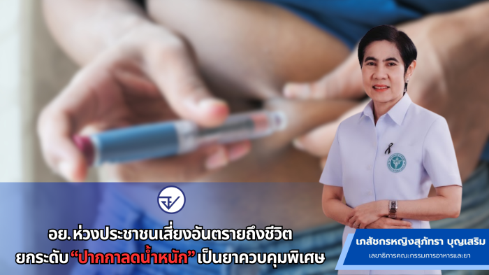 เภสัชกรหญิงสุภัทรา บุญเสริม เลขาธิการคณะกรรมการอาหารและยา เปิดเผยว่า จากกระแสการใช้ “ปากกาฉีดลดน้ำหนัก” ที่แพร่หลายในโซเชียลมีเดีย ซึ่งเป็นการนำไปใช้เพื่อลดน้ำหนักในกลุ่มคนทั่วไปโดยไม่มีคำแนะนำจากแพทย์ รวมถึงการปรับขนาดยาและวิธีฉีดด้วยตนเอง ซึ่งอาจก่อให้เกิดอันตรายต่อสุขภาพ สำนักงานคณะกรรมการอาหารและยา (อย.) ขอเรียนว่า ยากลุ่ม GLP-1 receptor agonists (GLP-1 RA) เช่น Semaglutide, Liraglutide, Dulaglutide, Lixisenatide และ Tirzepatide ได้รับอนุมัติให้ใช้สำหรับรักษาผู้ป่วยโรคเบาหวานชนิดที่ 2 และช่วยควบคุมน้ำหนักในผู้ที่มีภาวะอ้วนภายใต้การวินิจฉัยและสั่งจ่ายโดยแพทย์เท่านั้น ไม่ใช่ยาลดน้ำหนักเพื่อความสวยงาม การใช้ยาเองอย่างไม่ถูกต้องหรือหยุดยาเอง แม้ยาจะช่วยลดความอยากอาหารและทำให้น้ำหนักลดลงได้ในระยะหนึ่ง แต่อาจทำให้น้ำหนักเพิ่มขึ้นอย่างรวดเร็ว (โยโย่) และเสี่ยงอาการไม่พึงประสงค์ เช่น ภาวะน้ำตาลในเลือดต่ำ ตับอ่อนอักเสบ ไตวาย ภาวะซึมเศร้า หรือกล้ามเนื้อฝ่อลีบ และอาจเสี่ยงอันตรายรุนแรงถึงชีวิต โดยเฉพาะผู้ที่มีโรคประจำตัว